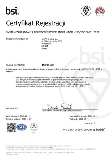 Posiadamy certyfikaty ISO z rodziny 27000
