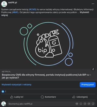 Automatycznie publikuj link do informacji prasowej wraz z komentarzem na firmowej stronie na Facebooku.