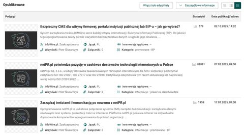 dopracuj publikację dzięki wygodnemu edytorowi WYSIWYG, dołączaj dowolne załączniki, dodaj alternatywny format tekstowy komunikatu, zadecyduj o momencie publikacji